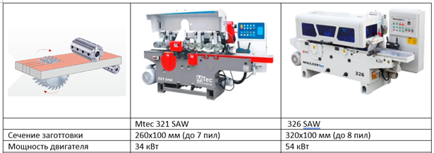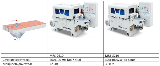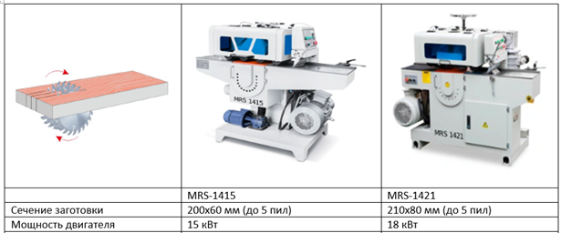 Многопильные станки с рейсмусовым валом: